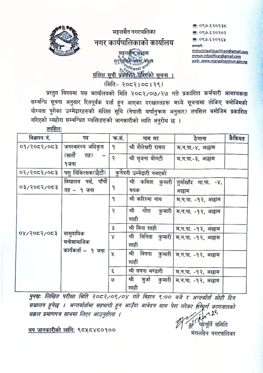 » सम्क्षिप्त सुची प्रकासित गरिएको बारे |