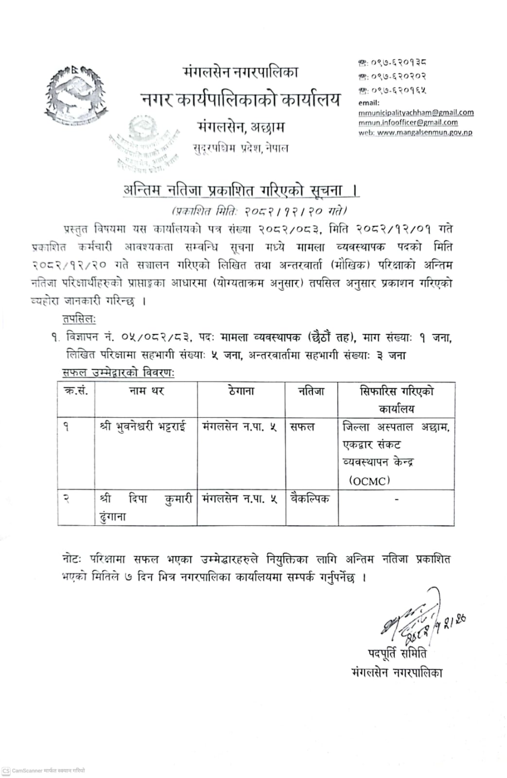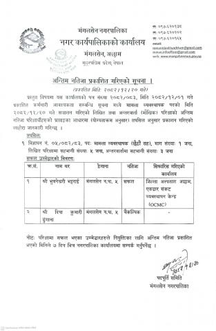 अन्तिम नतिजा प्रकासित गरिएको बारे |
