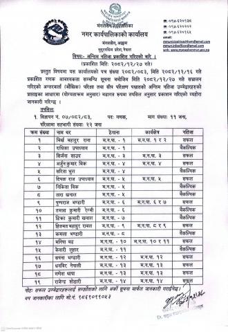 सम्क्षिप्त सुची प्रकाशित गरिएको बारे |