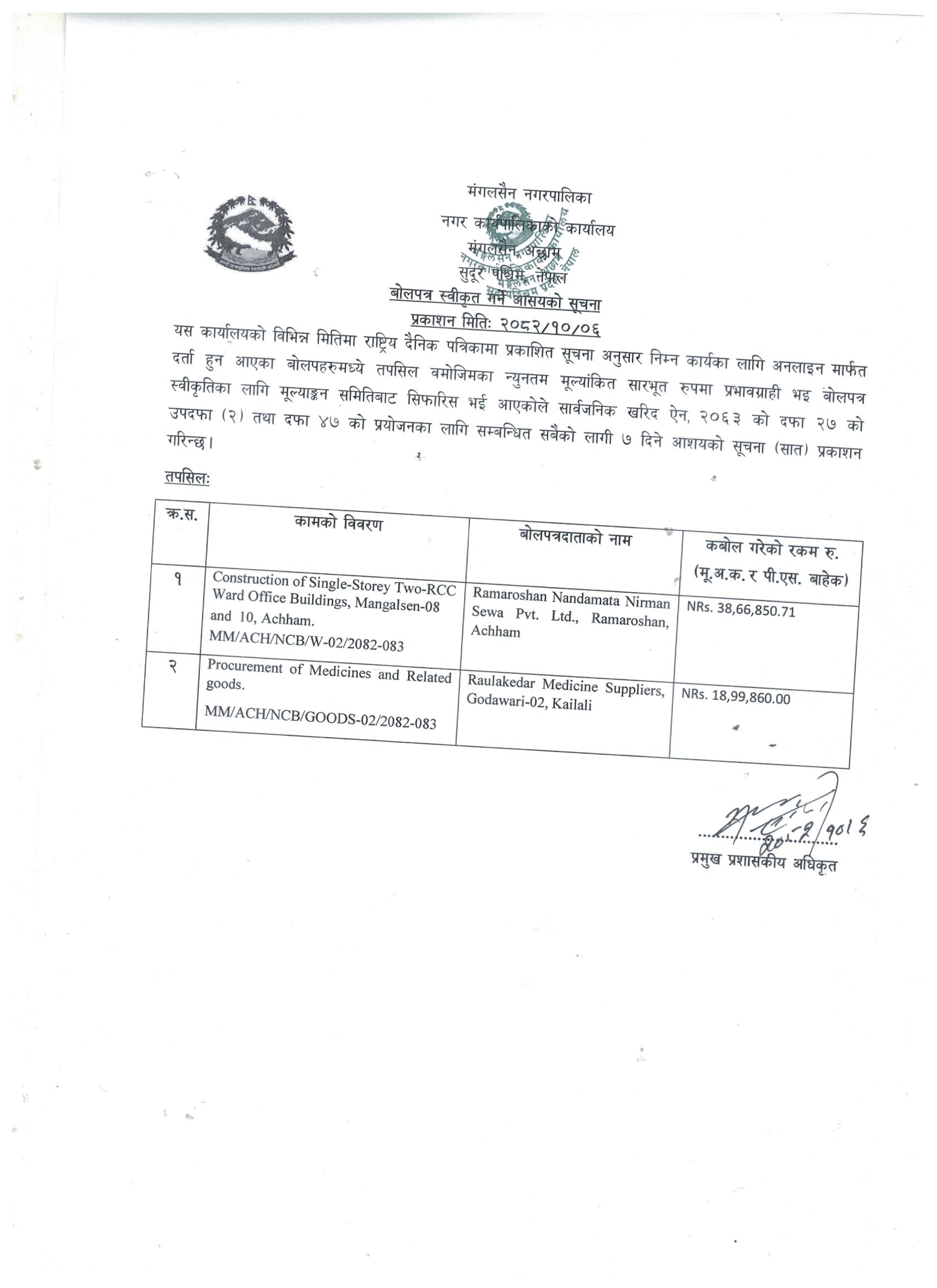 Construction Of Ward No 8,10 And Procurement Of Medicines And Related Goods.