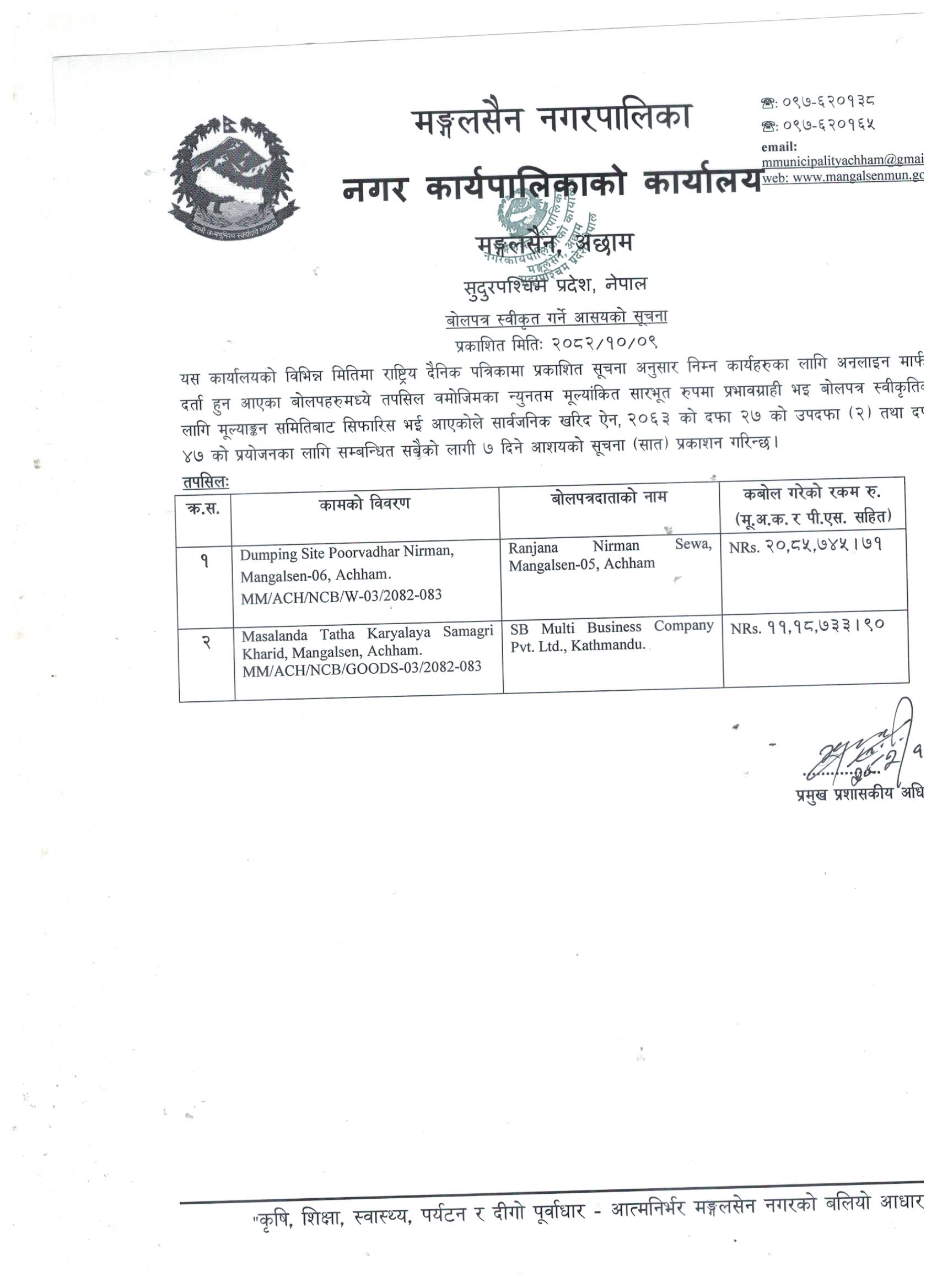 ठेक्का संशोधन सम्बन्धि सूचना |(Construction of Redcross dekhi Nagarpalika Kendra -Jodne Kalopatre Sadak Mangalsen-5, Achham (MM/ACH/NCB/W-01/2082-083)