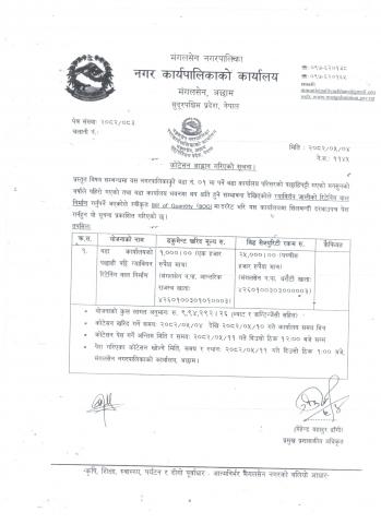 कोटेशन आव्हान गरिएको सूचना (पूर्वाधार शाखा)|