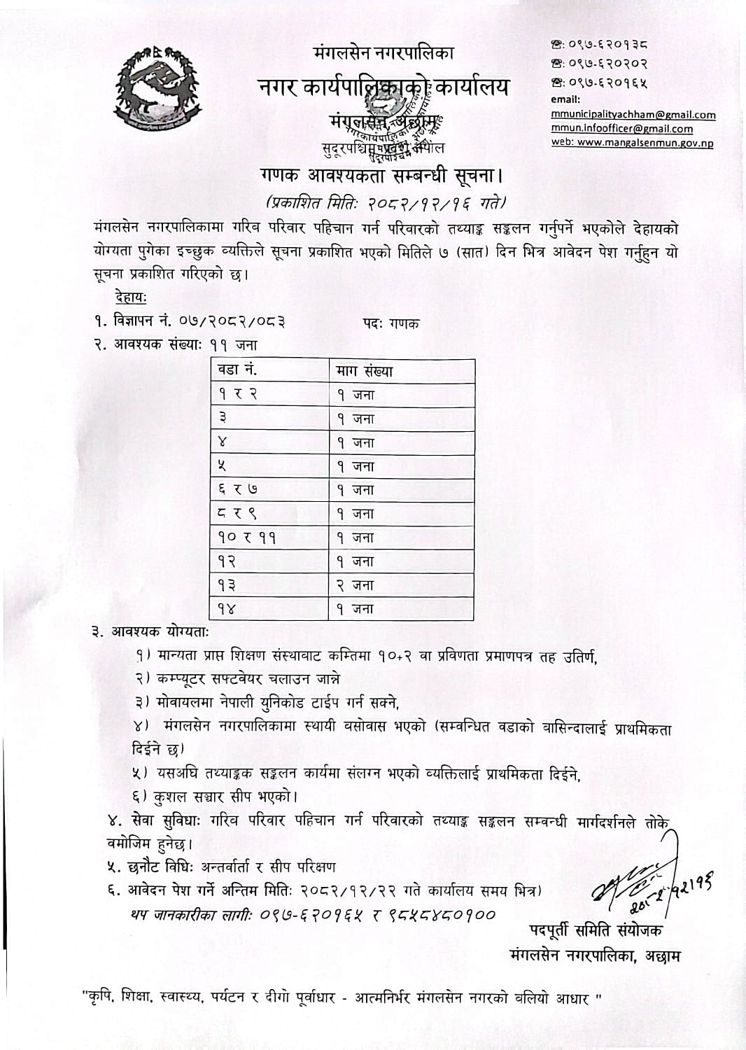बिभिन्न पदमा कर्मचारी आवश्यकता सम्बन्धी सूचना |