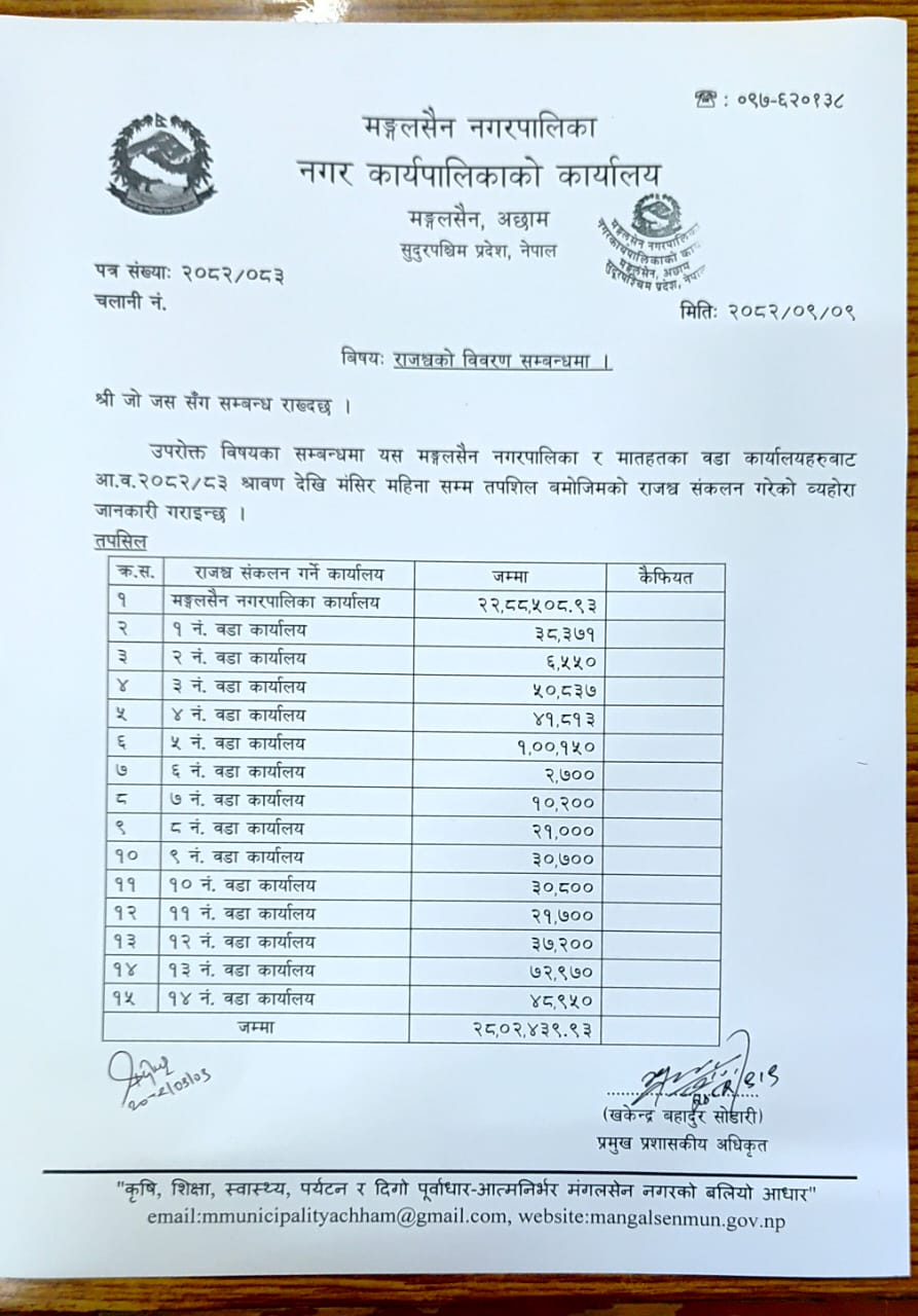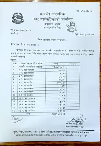 » राजस्वको विवरण सम्बन्धमा (वडा कार्यालय १-१४ ) श्रावण देखि मंसिर सम्म |