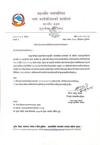 मङ्गलसैन नापर्पलिकाको प्रतिक चिन्ह(Logo) निर्माण गरि पेश गर्ने सम्बन्धी सूचना |