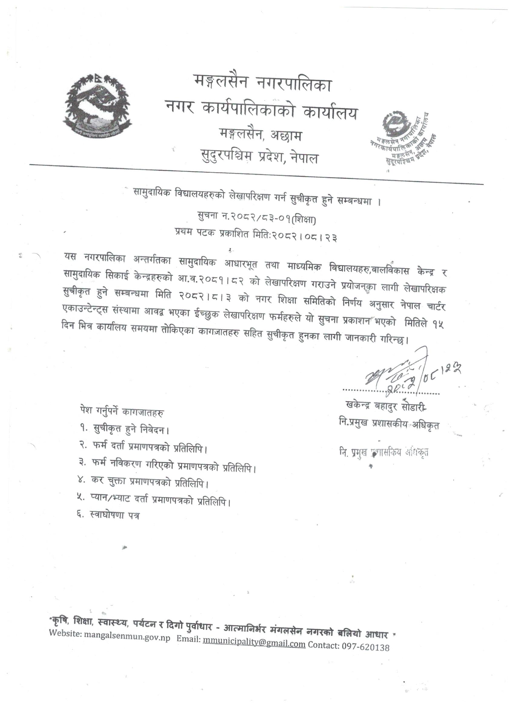 सामुदायिक विद्यालयहरुको लेखापरिक्षण गर्न सुचिकृत हुने सम्बन्धमा |